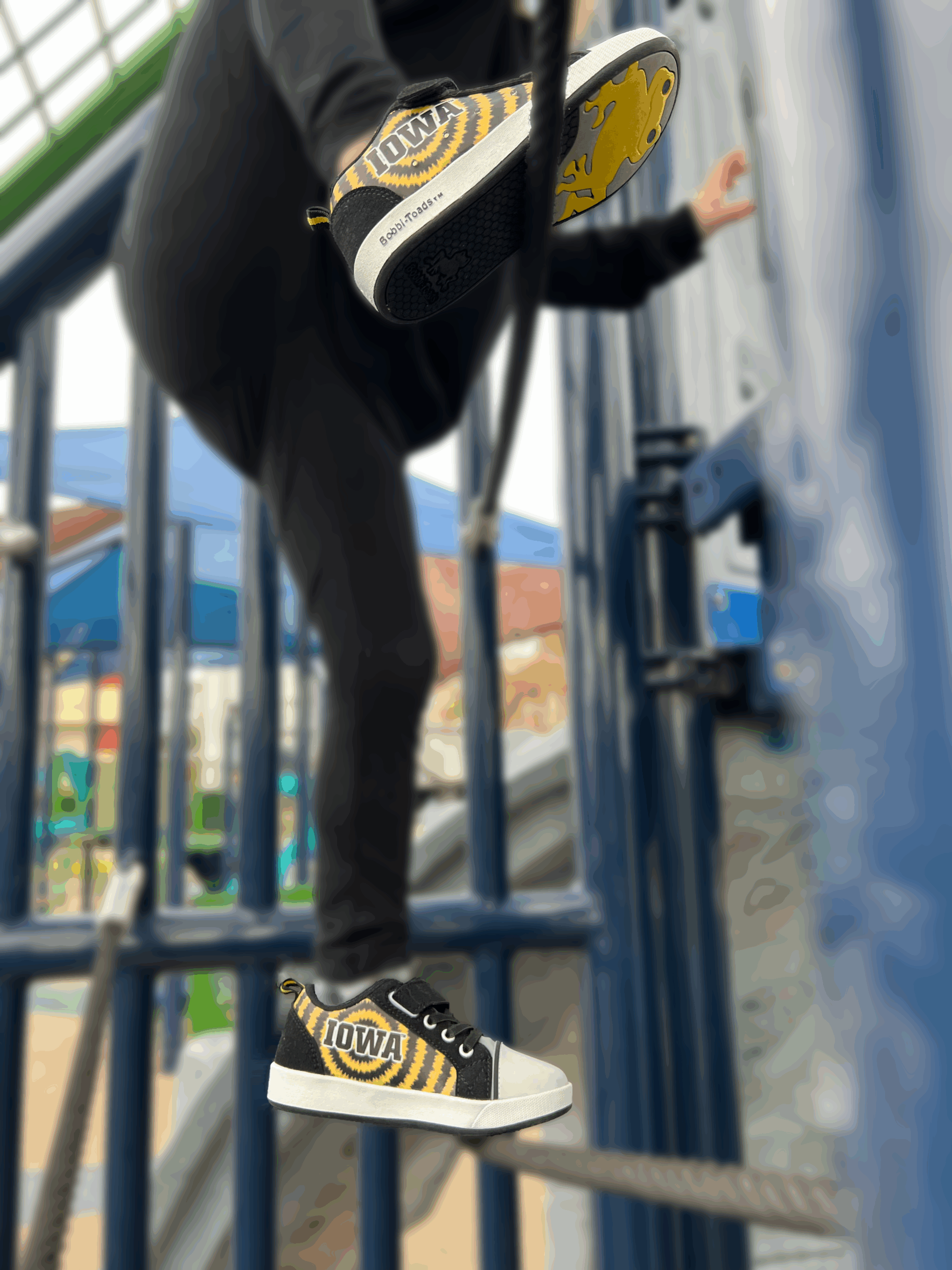 Officially NCAA licensed for the University of Iowa, Bobbi-Toads presents their NEW light-up shoes for kids. In true Bobbi-Toads fashion, these sneakers are not only durable, comfortable, and made with vegan leather, but the collector’s box is sturdy & encouraged for reuse, along with being completely recyclable when you’re done! These gender-neutral shoes are true-to-size and perfect for all the mini Hawkeye fans out there! Each pair includes a UIowa Herky (mascot) Bobbi-Dobbiez attachable mini plushie, which can be put on the shoes (or anywhere else you’d like to attach it: keychains, backpacks, etc.)
